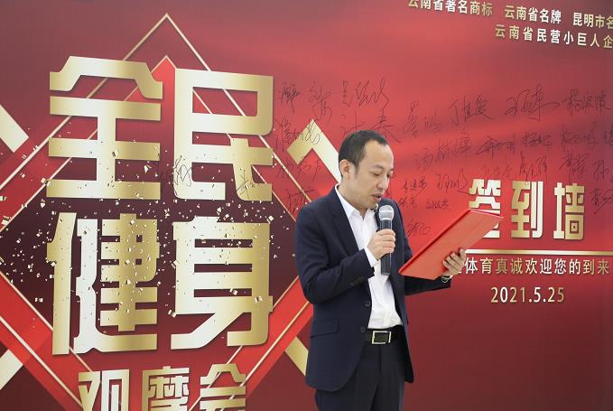 云南云健體育用品有限公司總經(jīng)理沐春先生致辭講話,沐春總經(jīng)理介紹說云健體育健身中心的建成一方面是倡導(dǎo)老百姓對科學(xué)健身的理念,讓他們直觀地看到科學(xué)健身需要輔助怎樣的器材。另一方面則是搭建全民健身的一個模板場景,把我們公司的體育器材產(chǎn)品、供應(yīng)體系、業(yè)績等進(jìn)行綜合性的展示,也吸引更多人關(guān)注和參與全民健身。