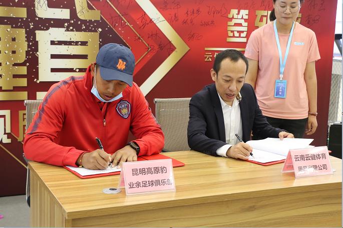 云南云健體育用品有限公司與昆明高原豹業(yè)余足球俱樂部現(xiàn)場簽約